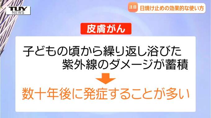 皮膚がんは、紫外線を浴びた直後に発症するものではないということですが、子どもの頃から繰り返し浴びた紫外線によるダメージが蓄積され、数十年後に発症することが多いといいます。