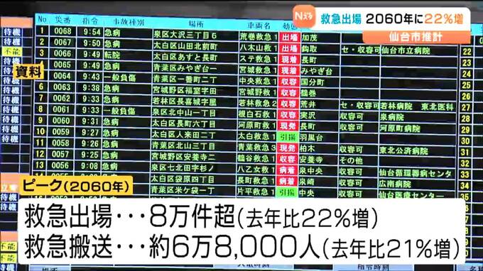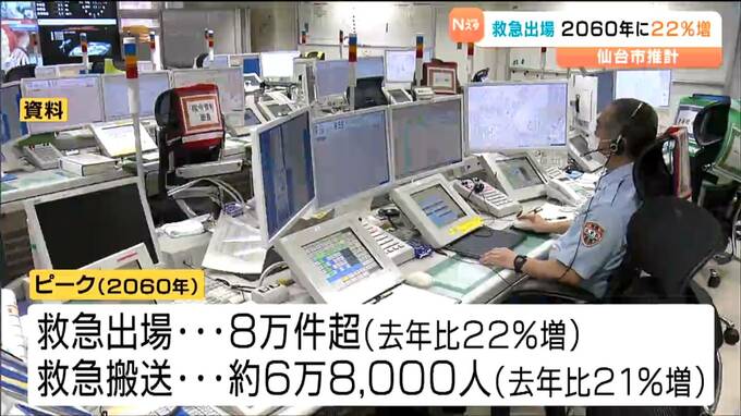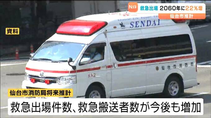 仙台市は将来の救急需要について分析した最新の推計を公表しました。救急出場件数は今後も増加し、ピークとなる2060年には今より22%あまり増えると予測しています。