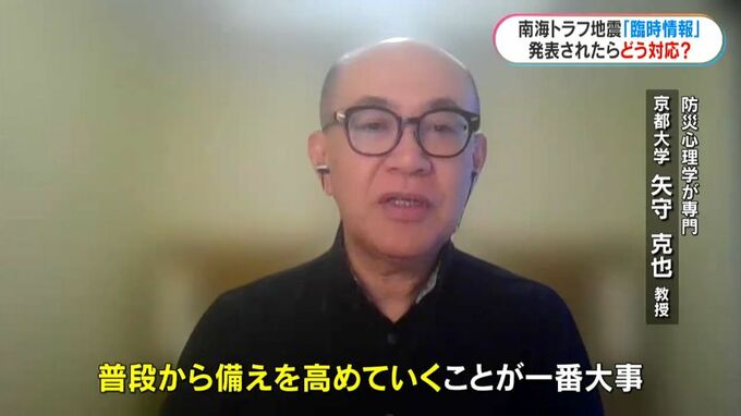 防災心理学が専門の京都大学・矢守克也教授は、災害が起きていない今のうちに臨時情報について理解を深めてほしいと話します。