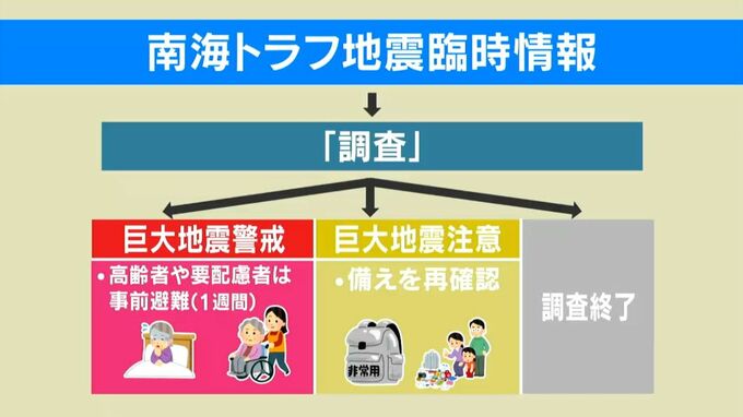一方、「巨大地震警戒」は、避難が難しい地域や高齢者らを対象に、1週間の事前避難が求められます。