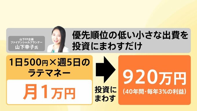 山下FP企画ファイナンシャルプランナーの山下幸子さんによると、優先順位の低い小さな出費を投資にまわすだけで…