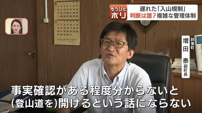 「登山道自体は林野庁の土地にあって広域ですし、羅臼岳は羅臼町のほうにも登山口がありますので、斜里町だけで決められることではない。事実確認がある程度わからないと(登山道を)すぐに開けるという話にはならない」