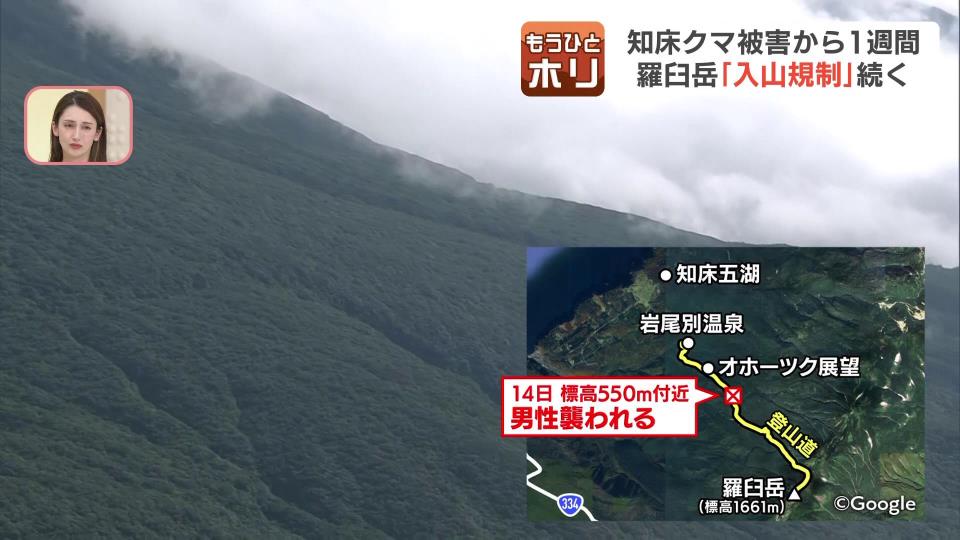 「登山者が襲われた羅臼岳に来ています。事故から1週間近くが経過しましたが、依然として登山道は閉鎖が続いています」