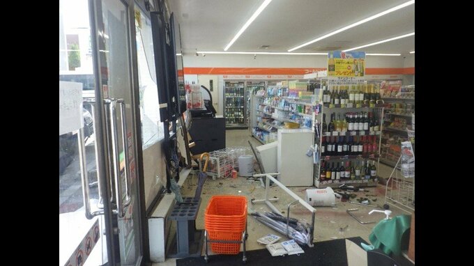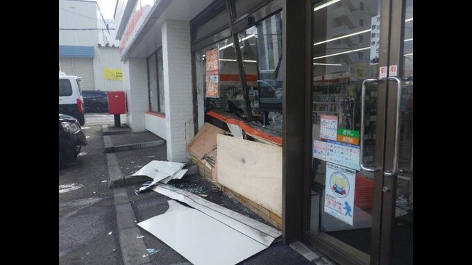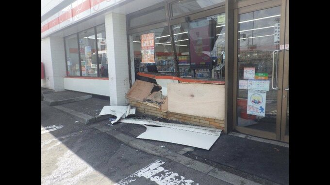 この事故によるけが人はいませんでしたが、コンビニの外壁やガラスが割れ、店内の商品などにも被害がありました。
