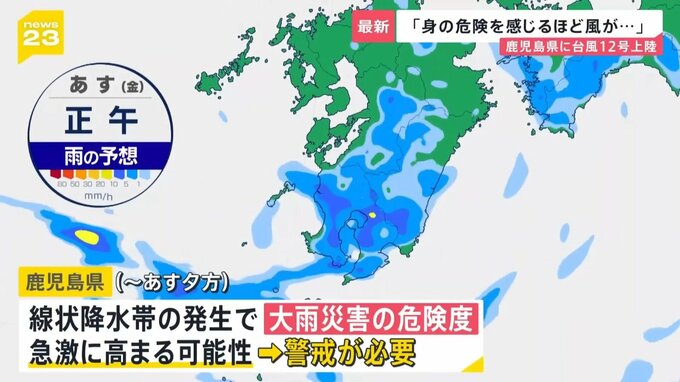 21日午後、鹿児島県に上陸した台風12号。すでに県内では浸水や土砂災害などの被害が出ています。さらに今後、22日にかけて線状降水帯が発生するおそれもあり、注意が必要となっています。