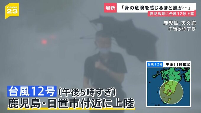 台風12号は21日午後5時すぎ、鹿児島県日置市付近に上陸しました。