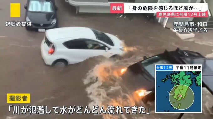 午後6時半ごろの鹿児島市内の映像を撮影した人は「川が氾濫して、水がどんどん流れてきた」と被害の状況を語りました。