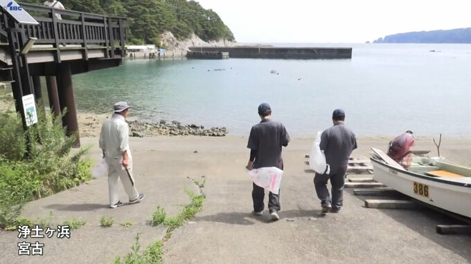 このうち浄土ヶ浜ではコンクリートのすき間のごみや、浜に漂着したごみなどが拾い集められました。