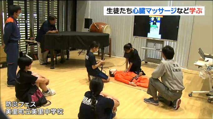 夏休みに合わせ、美里町内の中学校で防災教室が開かれ生徒たちが、心臓マッサージの方法などを学びました。「こちらで映像を確認しています。倒れている人が移るように移動してください。」美里中学校で開かれた防…