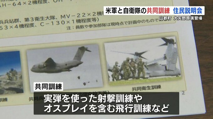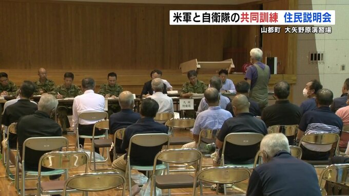 アメリカ軍と自衛隊の共同訓練が9月に山都町の大矢野原演習場で行われるのを前に、住民説明会が開かれました。