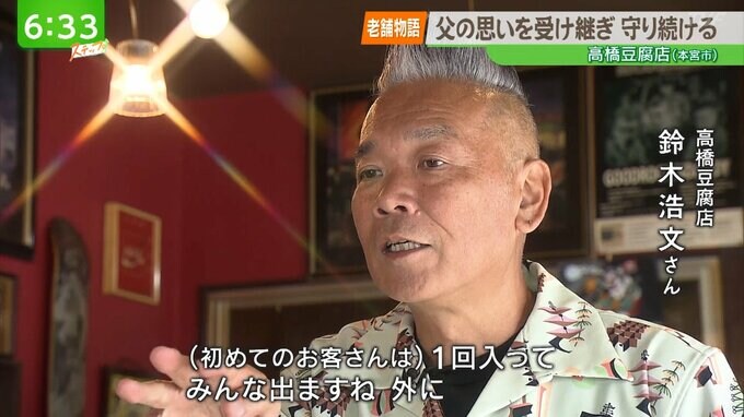--鈴木さん(高橋豆腐店)「(初めてのお客さんは)1回入って、みんな出ますね、外に。看板見て、もう1回入ってきて、そこから『お豆腐売ってますか?』と聞かれるので、『売ってますよ』と対応するんですけど。」