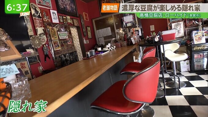 ロック好きの浩文さんが作った、豆腐と笑顔があふれる空間。これからも人々が集う隠れ家として、地域に根付いていきます。