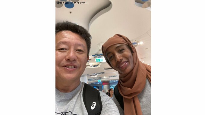 2年前、大会を終えたブダペストの空港で、お土産を選ぶハッサン(同大会は5000mで銀、1500mで銅メダル)と偶然出会った初田アナ。ひとりの陸上ファンとして声をかけると、快く写真撮影に応じてくれた。東京での再会も約束し、陸上界のヒロインの気さくな人柄に触れた、心温まる瞬間だった。