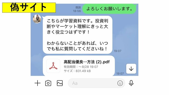 そのLINEグループに入ると、「投資に関する情報をお届けしてまいります」などとして、学習資料などが送付されていました。