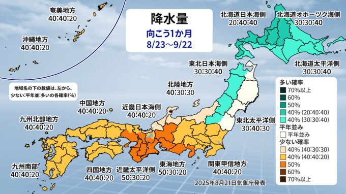 一方で、北日本の日本海側は、前線の影響を受けやすく降水量は「平年並みか多い」見込みです。