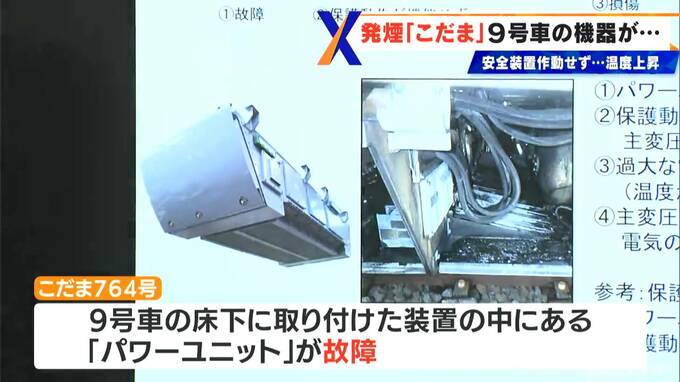 パワーユニットは、モーターの出力を調整する機器で、本来、不具合が起きた場合は電流を遮断する安全装置がはたらきますが今回は作動せず、温度が上がって煙が出たとみられています。