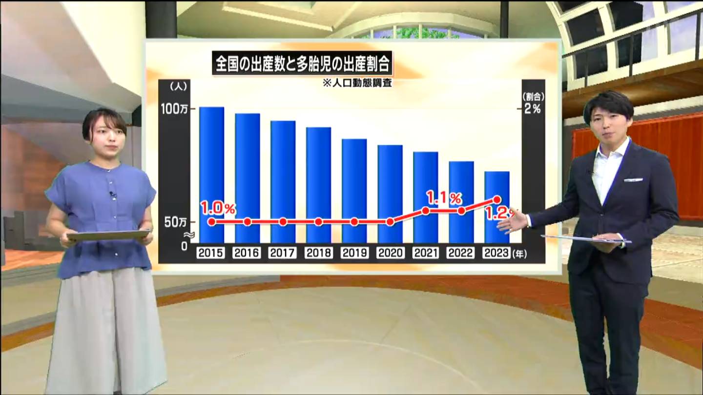 玉置アナ:そうですね。一度に複数の子どもが生まれる割合をこちらにまとめました。