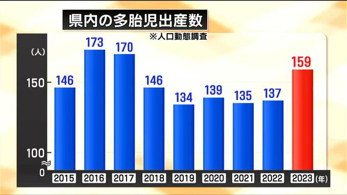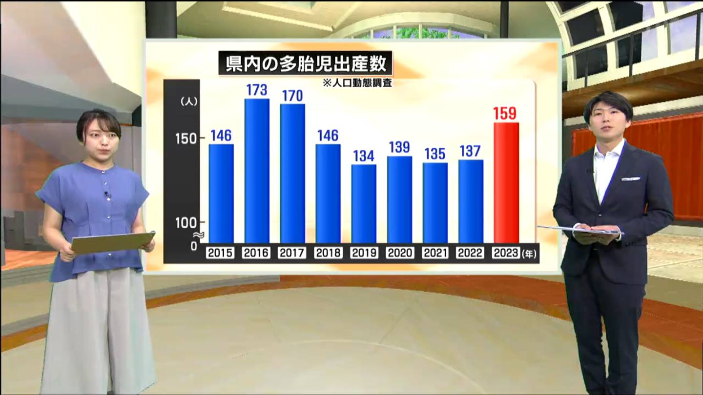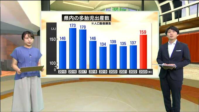 玉置アナ:そうなんです。少子化も進んで、より一層見つけにくそうですね。県内の双子や三つ子の出産数をこちらにまとめました。