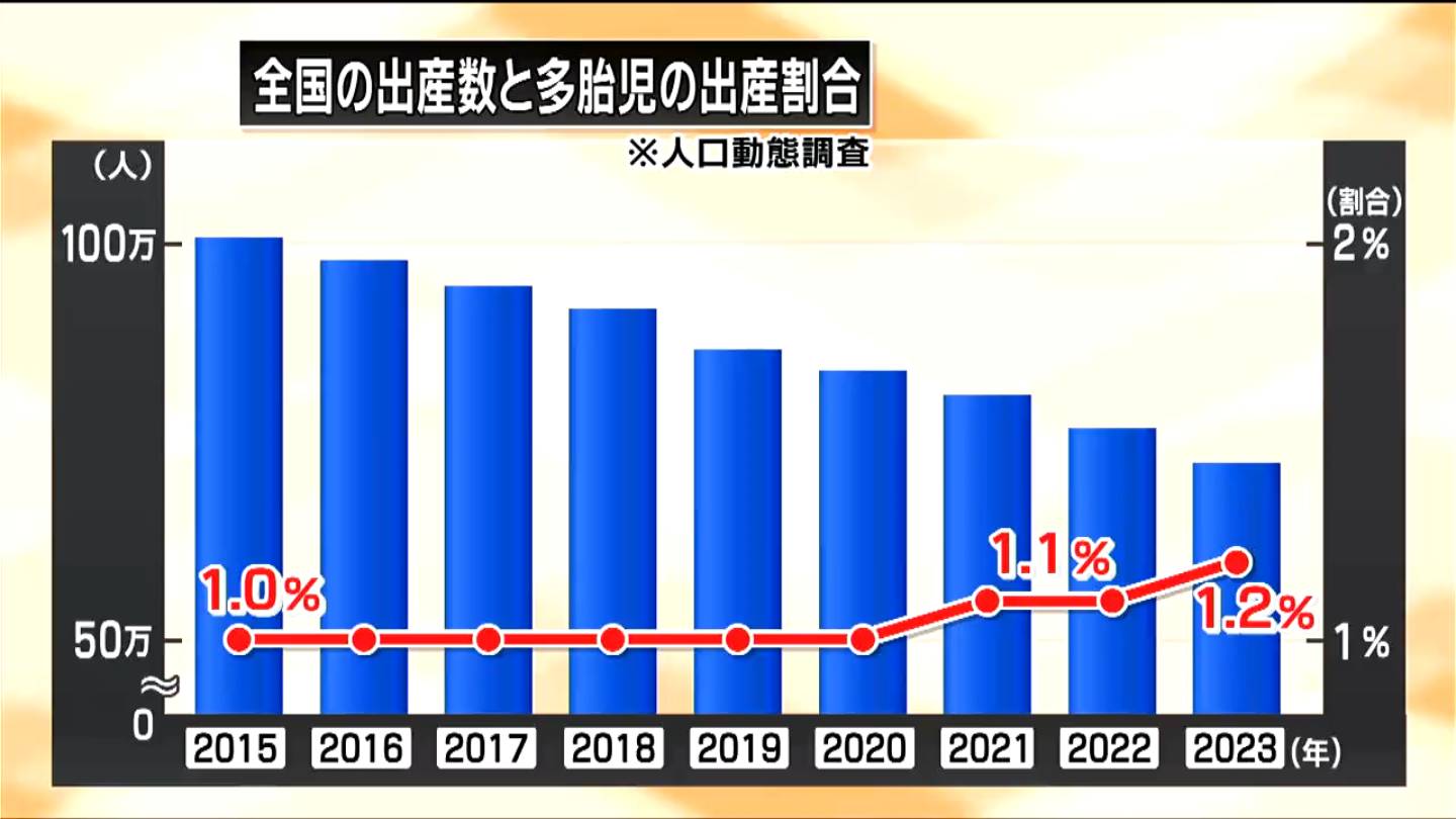総務省によりますと、全体の出産数のうち、1%程度が多胎児となっています。