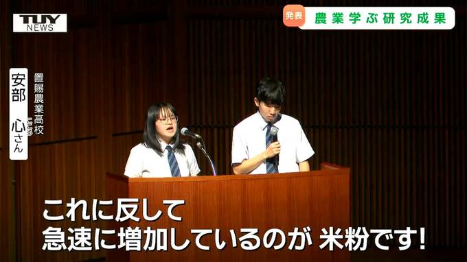 県立置賜農業高校 安部心さん「お米の消費量は毎年10万トン近く減少を続け、これに反して急速に増加しているのが、米粉です!」