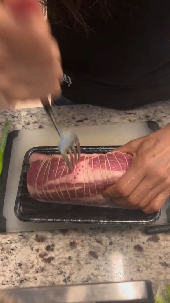 工藤さんは、「普通に焼き豚」と題し、焼豚の作り方の動画を投稿。「次の日に残った豚と野菜をクレープに包んだり、生春巻きに包んだりしてもおいしいです!!」とアレンジ方法も提案しています。