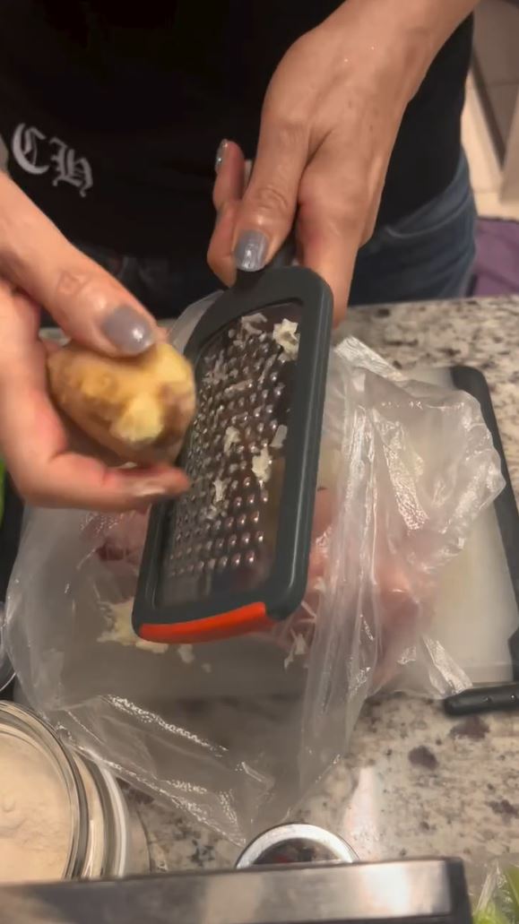 調味料は「しょうが、ニンニク、八角、てんさい糖、みりん、醤油、ネギの青いところ」を使用。調理の様子を収めた動画では、工藤さんがまずフォークで豚ロース肉に穴を開け、その後ニンニクをすりおろし、各種調味料をビニール袋に入れて混ぜ合わせる様子が映っています。
