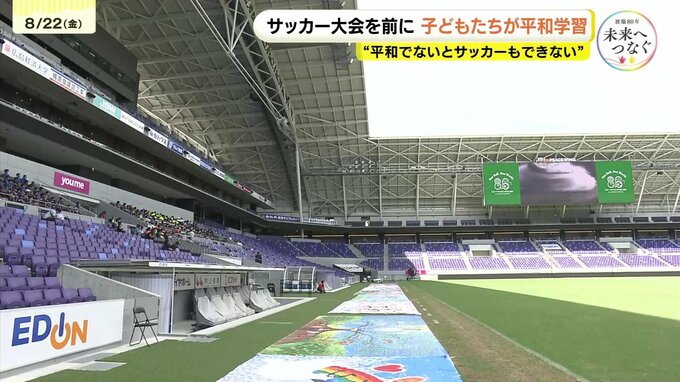 子どもたちにサッカーを通じ平和への思いを育んでもらおうと、あすから始まるサッカー大会を前に、平和学習が行われました。