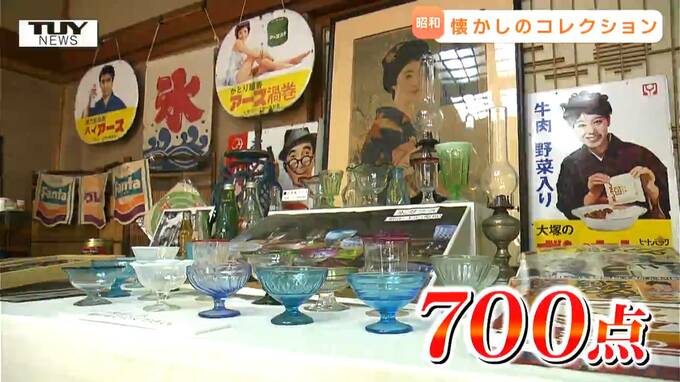 当時の広告や、看板、雑誌など、昭和レトロを感じる展示品、およそ700点。そのうち500点を所有する山辺町在住の有間良雄さんに、見どころを案内してもらいました。
