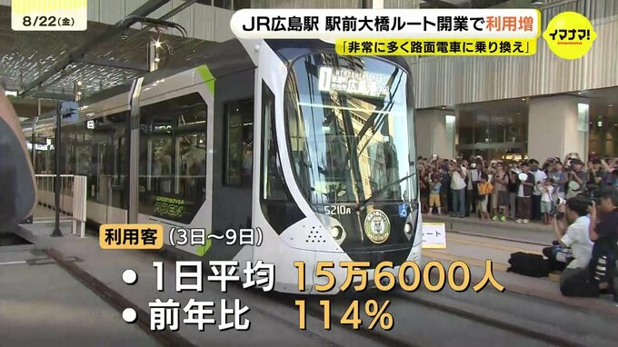 JR西日本によりますと、広島電鉄・駅前大橋ルート開業から1週間で、JR広島駅の利用者は1日平均15万6000人で、前の年と比べ14%増えました。