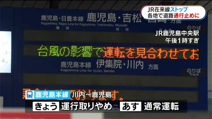 鉄道など県内の交通機関は影響が続いています。(記者)「在来線の改札口は電気が消え、閑散としている」JR鹿児島本線の鹿児島と川内の間は終日、運転を取りやめていて、あす23日は通常運転です。日豊本線の鹿児島…