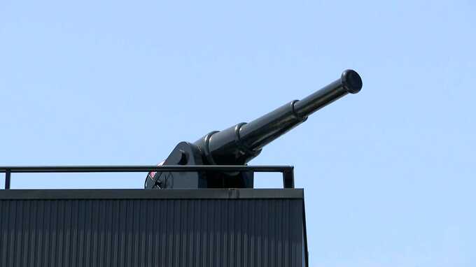 「閑静な住宅街を歩いていると見えてきました。あちらの建物の屋上に大砲のようなものが見えてきました」