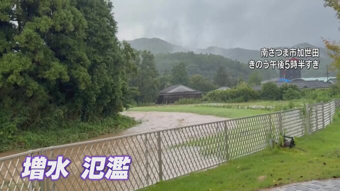 河川の増水、氾濫も。記録的短時間大雨情報が出されたいちき串木野市では金山川があふれ、道が濁流に覆われました。