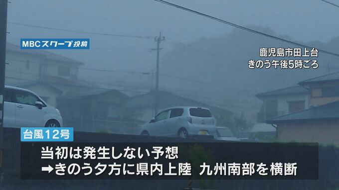 21日午前、九州の西の海上で突如発生した、台風12号。当初は台風に発達しない予想でしたが、一転。夕方には県内に上陸し、九州南部を横断しました。