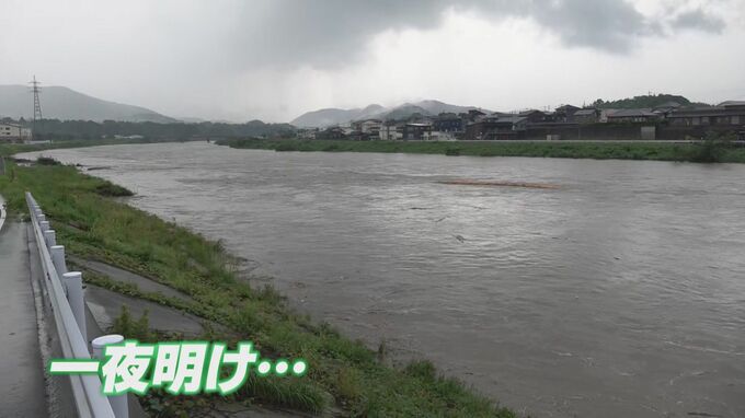 (記者)「氾濫した川の水に押し流されたのか。軽トラックが傾いてとまり、ドアの開いた車も放置されている」