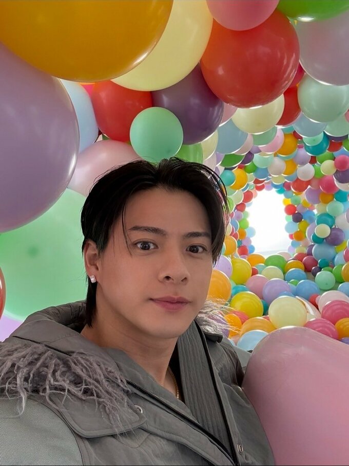 その風船トンネルの中で自撮りをする平野さんの楽しげな表情も見ることができます。