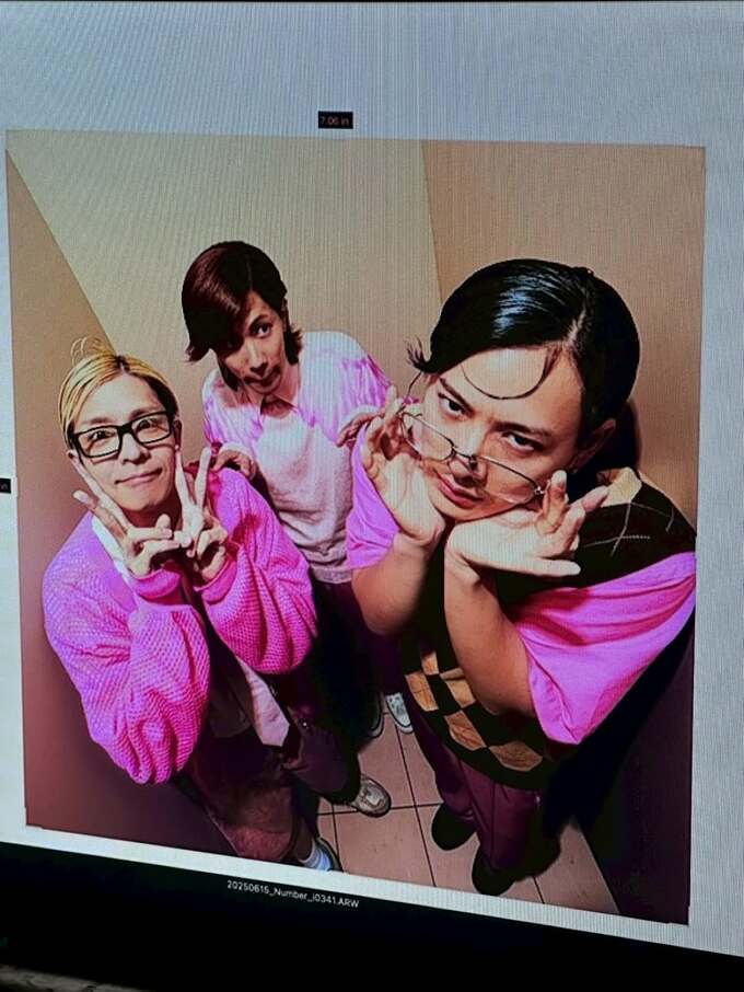 また別のカットでは、メンバー3人がピンクの衣装に身を包み、ユニークなポーズでカメラに向かって写っている様子も。