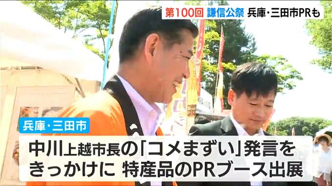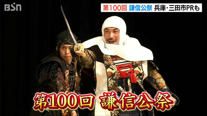 記念すべき100回目の謙信公祭が23日、上越市で始まり、兵庫県三田市のPRブースも出展しました。