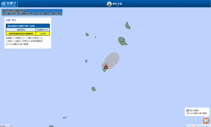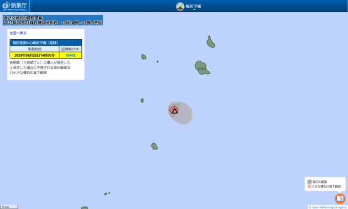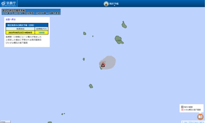 23日21時から24時までは、火口から北東方向に降灰が予想されます。