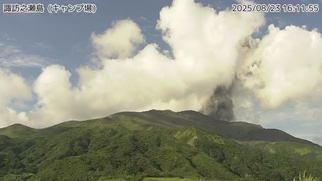 諏訪之瀬島の御岳火口で23日午後4時9分に爆発的噴火があり、噴煙が火口から1200mの高さまで上がりました。噴煙は南東に流れています。噴煙の様子は画像で掲載しています。