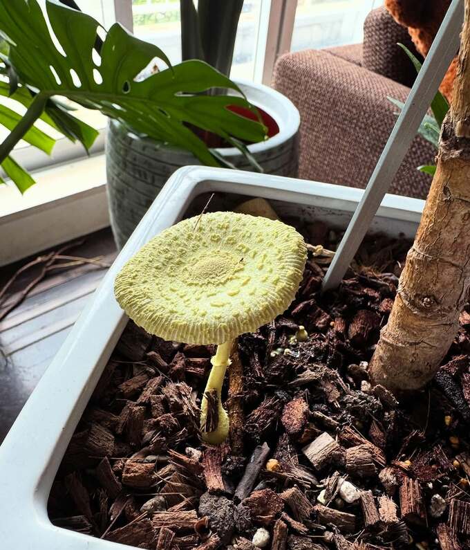 俳優の高岡早紀さんが、自身のインスタグラムを更新。自宅の植物の下に生えた、珍しいきのこの画像を投稿しました。