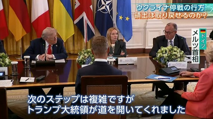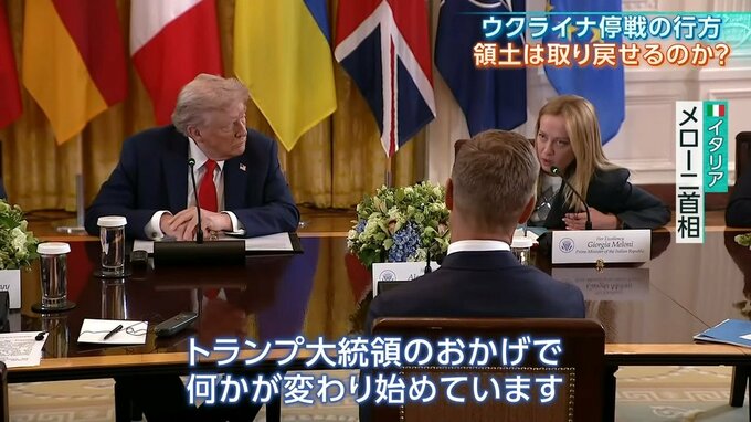 18日、世界が注目したトランプ大統領とゼレンスキー大統領の会談。今回は、2人だけでなく、ヨーロッパの首脳らも「援軍」としてホワイトハウスに駆けつけ、口々にトランプ大統領を持ち上げたのです。