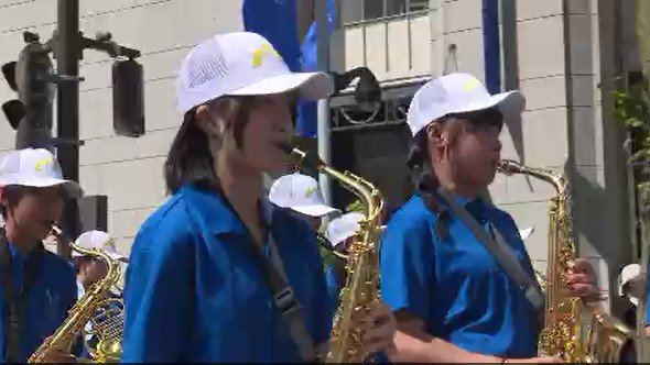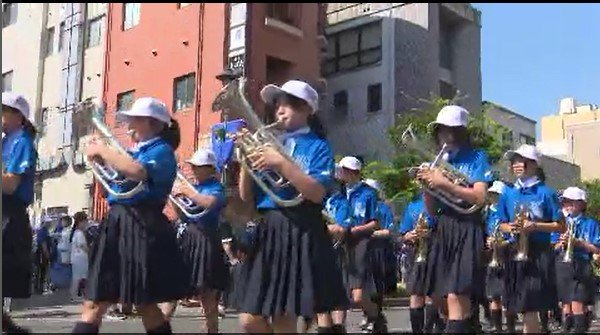 およそ1700人が、はつらつとした音を奏でながらおよそ1キロの道のりを行進しました。