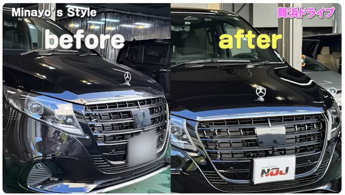 愛車のメルセデス・ベンツVクラスにコーティングを行い、夫とドライブをしたことを報告しています。