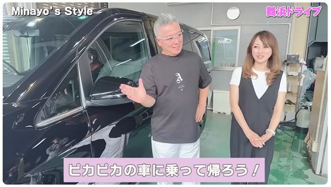 YOUTUBEチャンネルに投稿された動画では、渡辺美奈代さんが夫と共に、車のコーティング専門店を訪問。