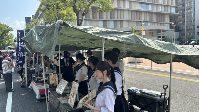買い物客に元気な声で購入を呼びかけるのは、高知商業高校の社会マネジメント科の生徒たちです。2020年から地域貢献を目的にジビエ部が日曜市で出店してきたことをきっかけに今回「チャレンジ出店」という企画がスタートしました。学校では5年前からジビエ部の生徒たちが日曜市で販売を行っていますが、ジビエ部のブースの横にもう一つテントを構え、高知商業高校だけでなく、他の学校が出店を希望する際にも対応できるスペースを確保します。