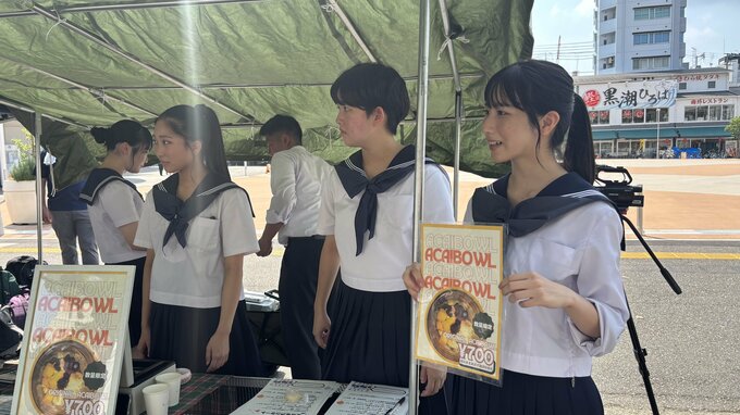 24日は早速、生徒たちが「アサイーボール」の購入を買い物客に呼びかけていました。