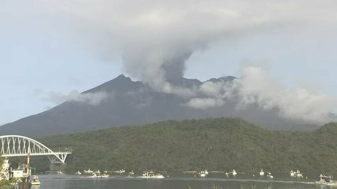 気象台によると、桜島の南岳山頂火口で25日午前1時52分に発生した噴火が、午前9時現在も継続し、連続噴火となっています。午前3時以降、最高で2200メートルの高さまで噴煙が上がりました。午前9時現在、噴煙は火口から1200メートルの高さで雲に入っています。