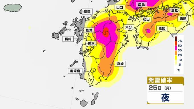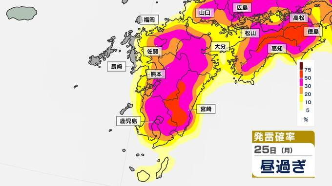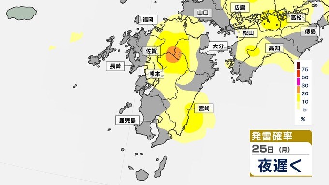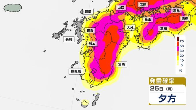 発雷確率が50%以上のところもあり、大気の状態は非常に不安定です。発雷確率のシミュレーションは画像で確認できます。