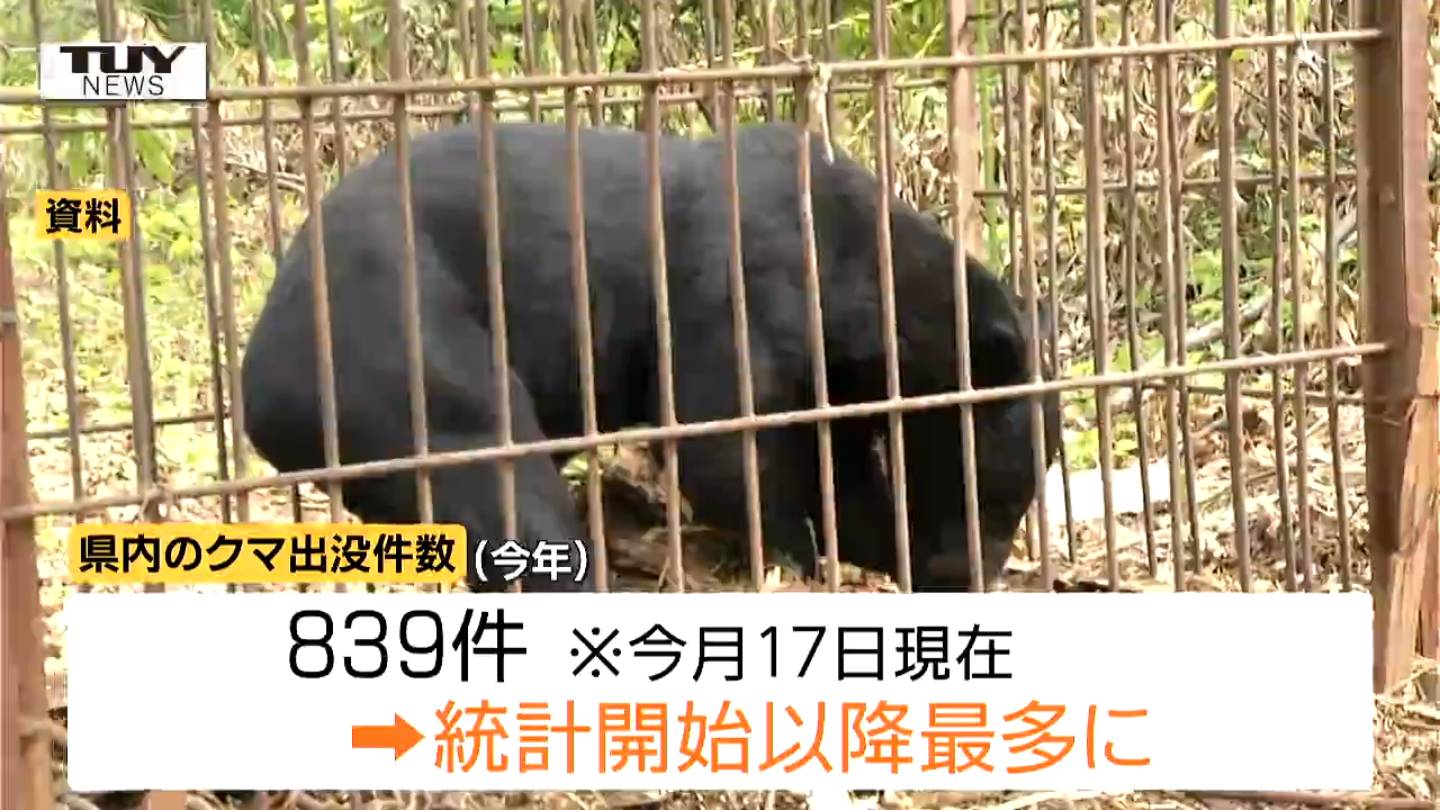 今年の県内のクマの出没は、8月17日時点で839件にのぼり、統計を取り始めた2003年以降最も多くなっています。また、クマによる人的被害が今年だけで5件発生しています。
