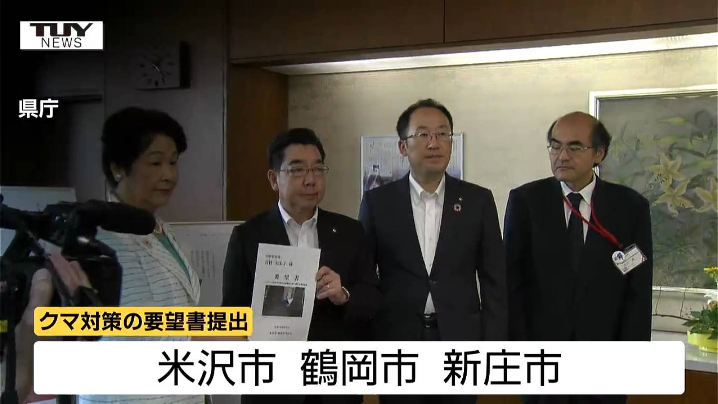 きょう、県に要望書を提出したのは熊の目撃や農作物の食害が多い米沢市、鶴岡市、新庄市です。